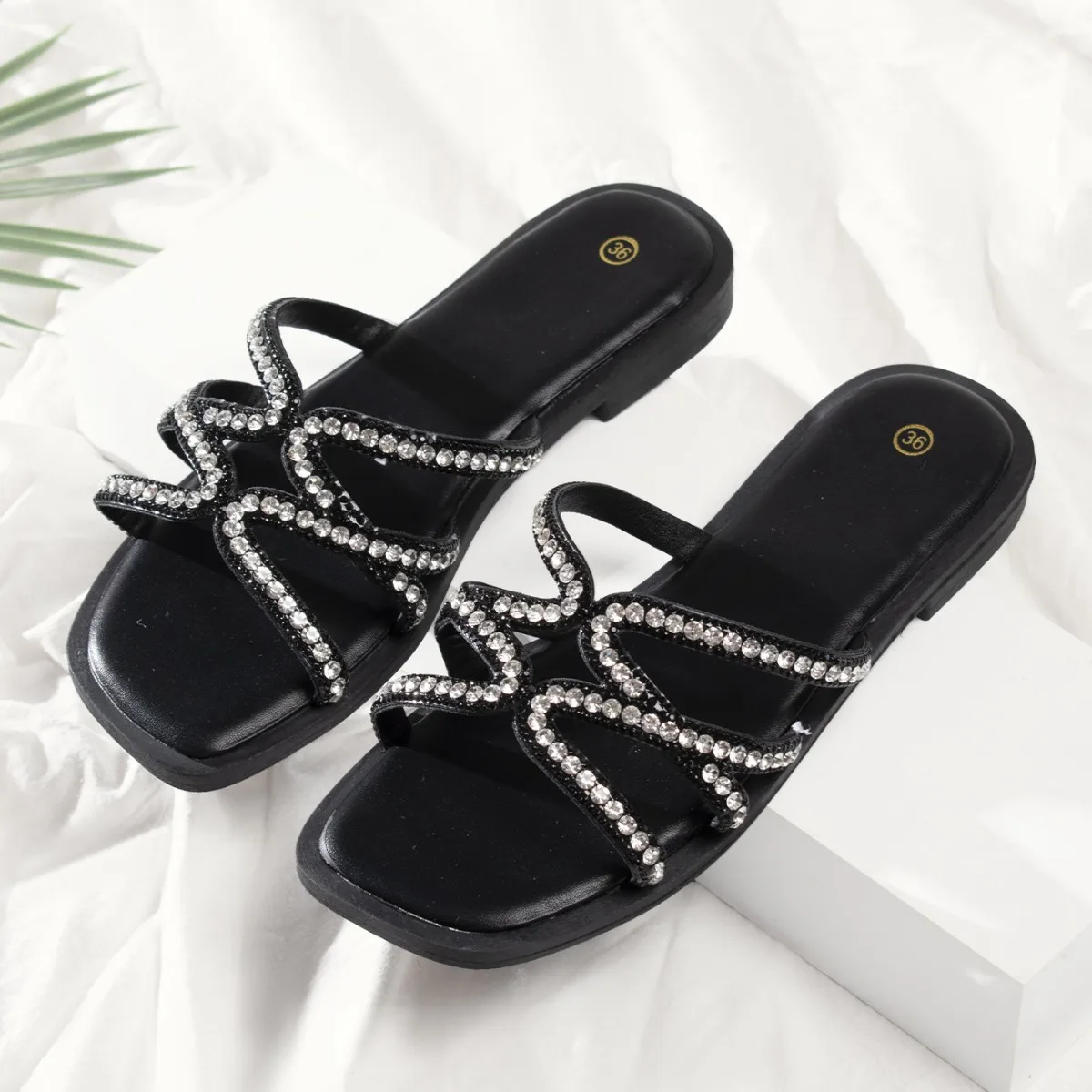 New Flat Heel Rhinolite Word Cool Drag Female European and American Leisure Resort Beach Drag Female slippers